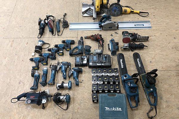 A gérvágó kivételével kizárólag akkumulátoros gépekkel érkezünk a helyszínre. Nincs vezeték rengeteg, nem kell a létrán hosszabbítózni, stb. Rendkívül praktikusak. A kisgépeim 100%-a ipari gép, nagyrészt Makita gyártmányúak.